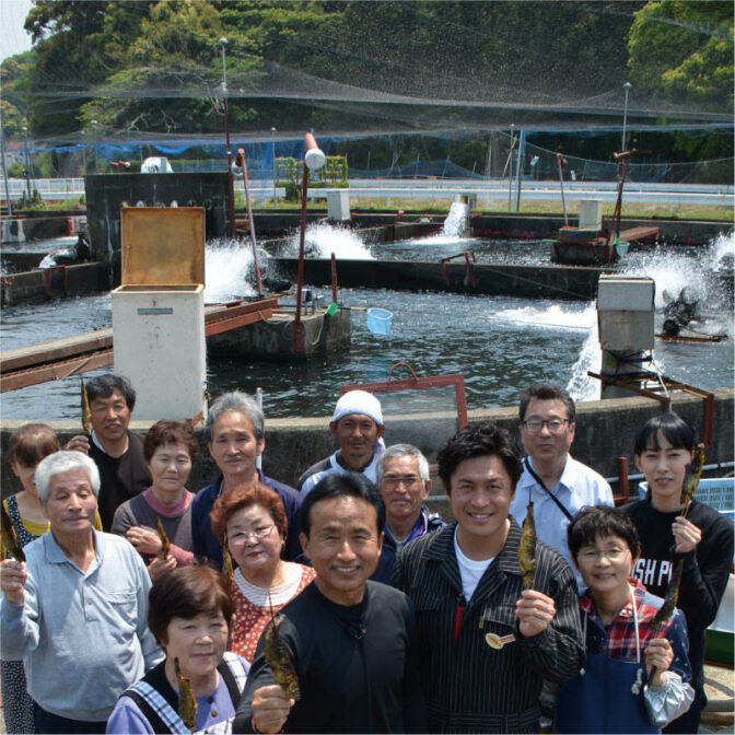 鮎達が泳ぐ水は富田川の地下水脈を引いており、飲めるほどキレイです。美味しいのはもちろん、安心・安全の鮎をお届けするために、飼料は厳選された国産の魚粉を使用しています。