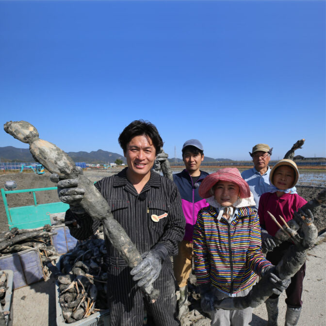 れんこんの一大産地、徳島県鳴門市の土壌は良質な粘土質。粘り気が強く締まった土の中をれんこんが伸びていくので、旨味が凝縮され、シャキシャキ、ホクホクのれんこんになります!色は白くてツヤがあります。