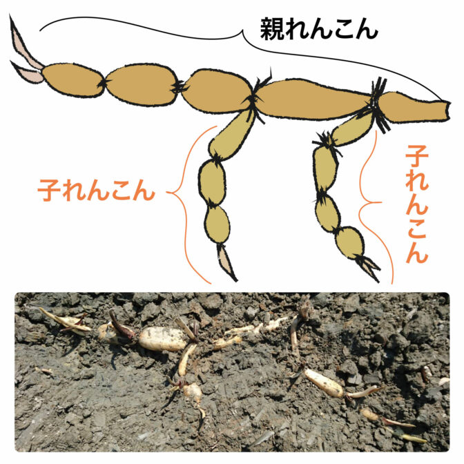 こちらは子れんこんと言って、親れんこんの横から生えてくるれんこんです。
