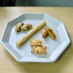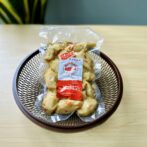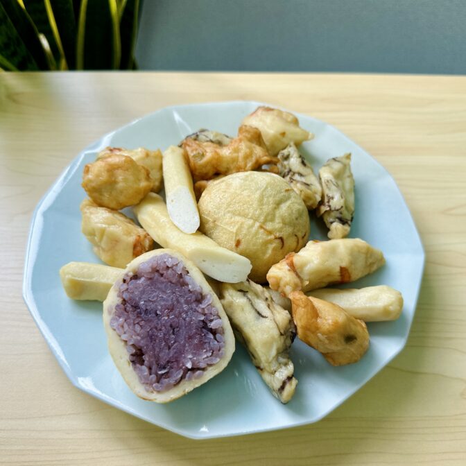 黒米のおにぎりをかまぼこ(さつま揚げ)で包んだだけなのに、なんだかクセになる美味しさです。
