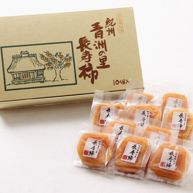 種無し柿を丁寧に剥きあげた長寿柿(あんぽ柿)はとろけるような食感と上品な甘さが特徴。