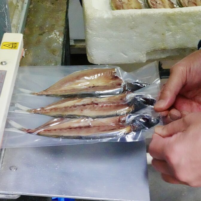 多くの人々に愛されるその干物は、一つひとつ丁寧な手作業で仕上げられています。