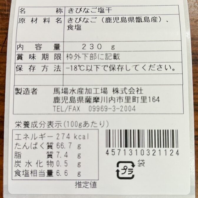 《内容量》・きびなご塩干約230g(きびなご:甑島産)