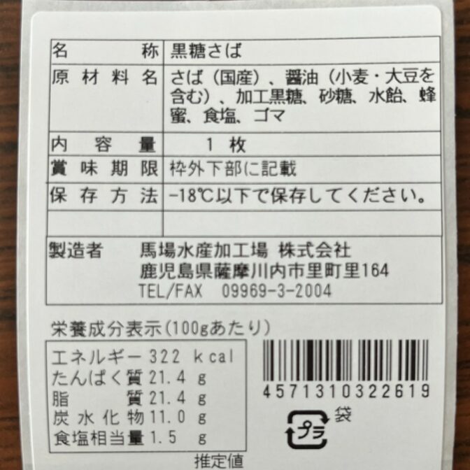 ・黒糖サバ半身1