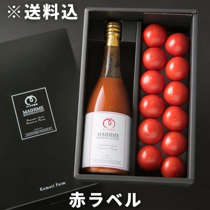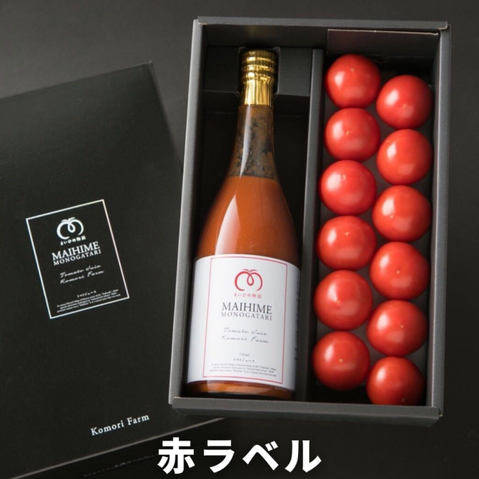 Tiktokで大人気!農業系インフルエンサー、まいひめおじさんが作るトマト「まいひめ物語」の100%ジュースを、二つ星(糖度8度)以上のトマトとセットでお届け!