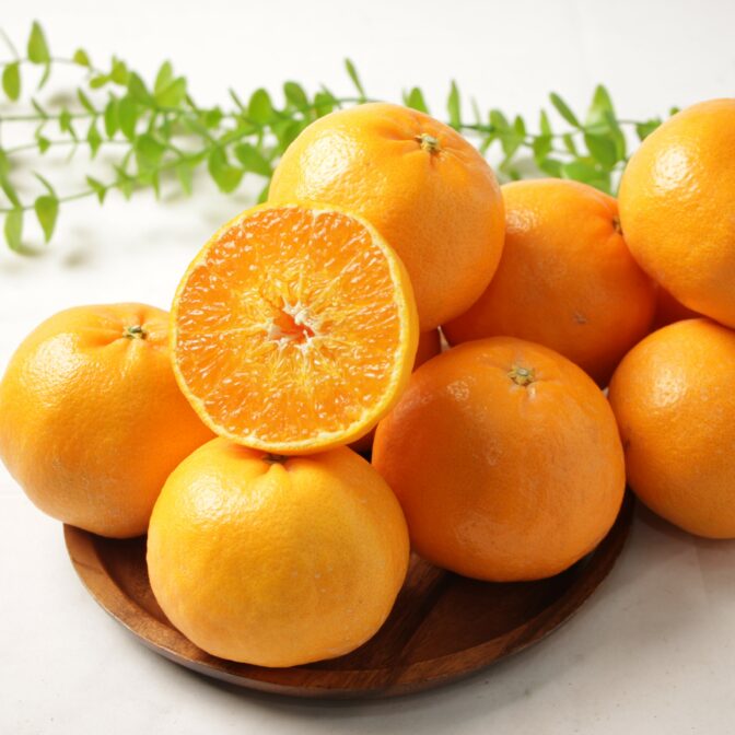 温州みかんのおよそ2倍の大きさで、鮮やかな橙色の果皮はひと目で特別感が伝わります。
