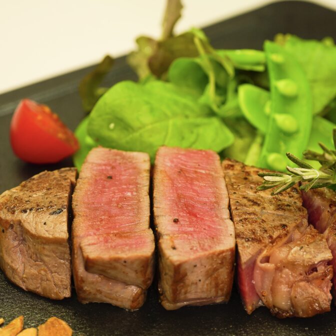 ヒレは、脂肪分が少ないため肉本来の旨味を堪能できる上、絹のような柔らかさ。