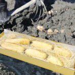 収穫は丁寧に全て手掘りで行われ、れんこんを傷つけたり、折ったりしないようにするのがかなり熟練の技(腰を曲げた作業なのでより大変!)で、これまで農作物の収穫は器用にこなして来た大畑でしたが、お手上げ状態、、