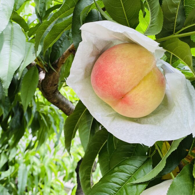 これにより肥料の吸収率を高め桃が元気に育ち、さらに糖度アップにもつながります。